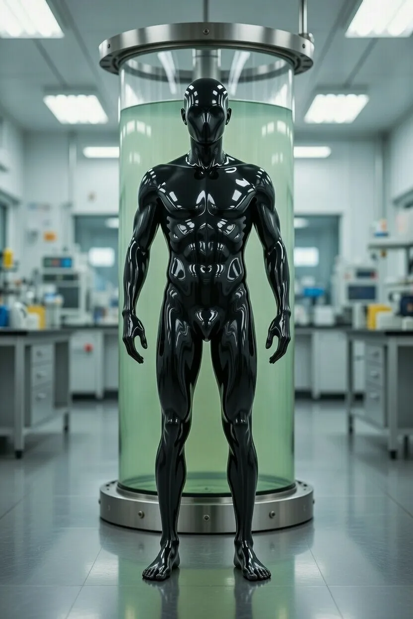我選擇留在實驗室最深的地下室,這裡到處都是和我一樣的黑膠人。