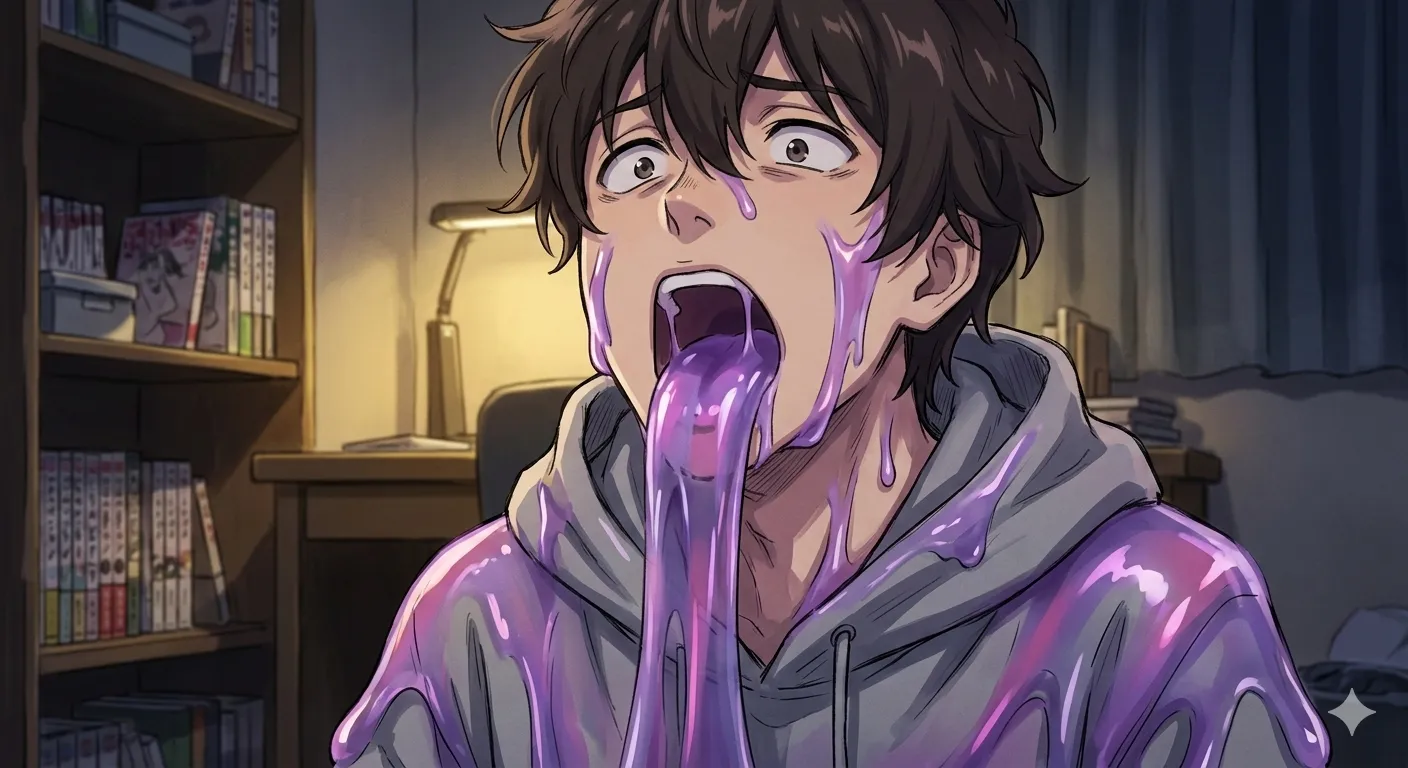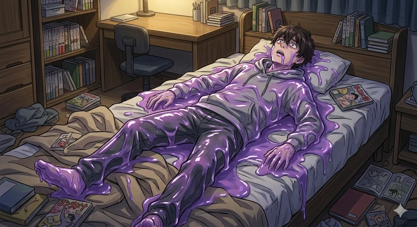 阿澤坐在寢室的地板上,那身亮紫色的乳膠肌膚在日光燈下反射著冰冷且淫靡的光澤。身為棒球隊的明星游擊手,他在完成「純化」後的爆發力讓他在球場上無往不利,但相對的,他體內那股被膠質扭曲的慾望,也比一般人強烈數十倍。